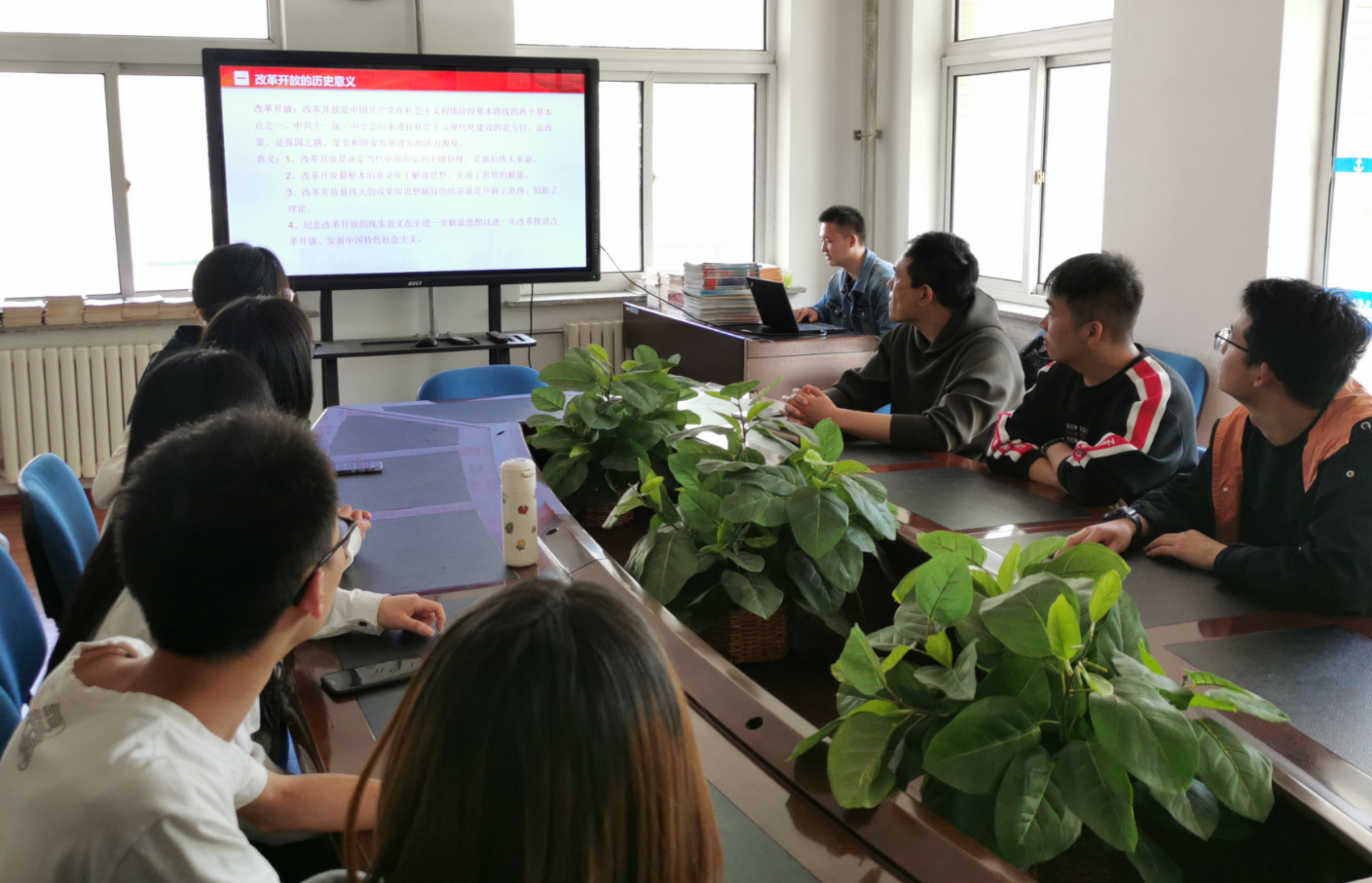 根据支部的党史学习安排,本次活动由刘安岭同学带大家一起回顾改革开放的时间线以及历史意义,他将改革开放的历史分为三个阶段进行介绍,阐述了起步和探索阶段、全面发展阶段以及整体推进和进一步深化阶段等三个方面的内容,通过党领导人民在改革开放时期取得的各项成就,证明了改革开放的正确性,使大家深刻认识到党的领导是改革开放取得成功的根本保证。随后,支部书记对刘安岭同学的讲解表示肯定,同时鼓励支部全体党员铭记党史,提高模范先锋意识。他要求支部党员要继承和发扬积极探索、开拓创新的精神,努力为身边的同学办实事,积极帮助有困难的学生,保证毕业季同学们的顺利离校,站好最后一班岗。